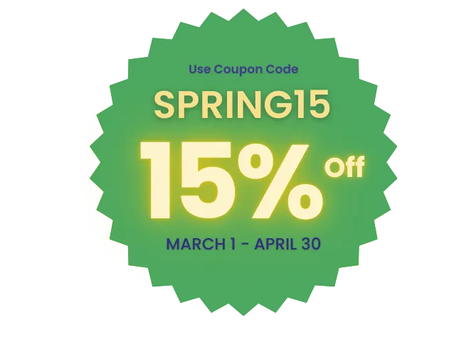 Get an additional 15% discount if you use the code "SPRING15" from March 1 - April 30, 2025